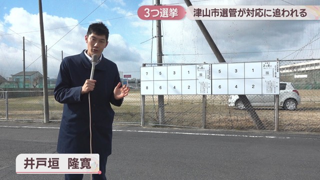 「現在、津山市長選挙と市議会議員の補欠選挙のポスター掲示板が設置されています。今回さらに衆議院の掲示板の設置も必要だということです」