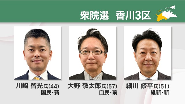 香川3区は前職1人に新人2人が挑みます。