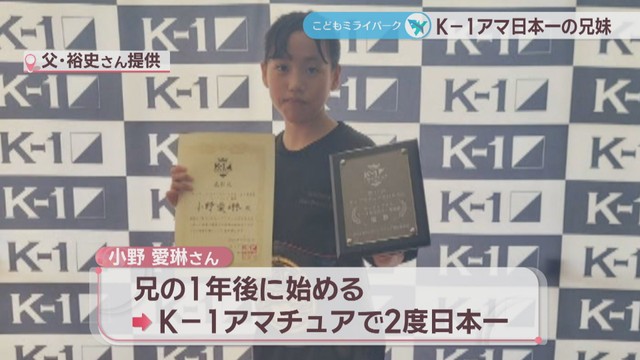 兄の1年後に空手とキックボクシングを始めた愛琳さん。K-1アマチュア全日本では4年前と2024年に優勝するなど結果を残しています。