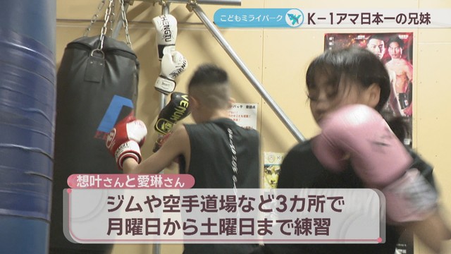 2人はこのジムのほかに善通寺市のジムと空手道場の3カ所で、月曜日から土曜日まで練習に励みます。