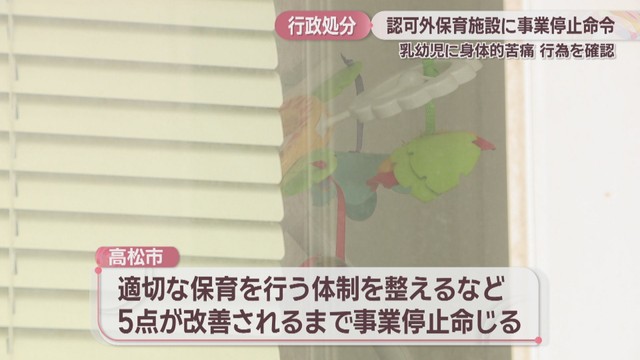 高松市は、適切な保育をする体制を整えることなど5点が改善されるまで事業の停止を命じています。