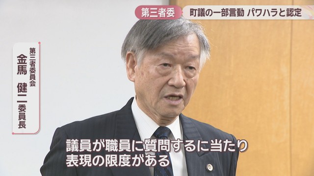 金馬委員長によりますと、第三者委員会は、ある議員が議会の委員会で職員に対して「おめえ」と見下した言い方をしたことなどはパワハラにあたると認定しました。