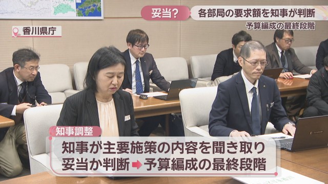 香川県の新年度当初予算案について、知事が各部局から聞き取る「知事調整」が28日、始まりました。