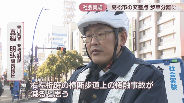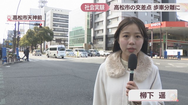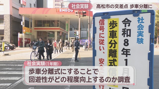 高松市中心部にある交差点で信号機を「歩車分離式」にする社会実験が28日、始まりました。メリットがある一方で、慣れるまでに注意する点もあります。