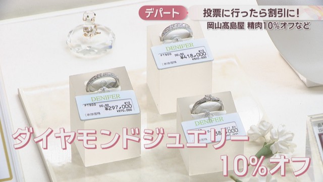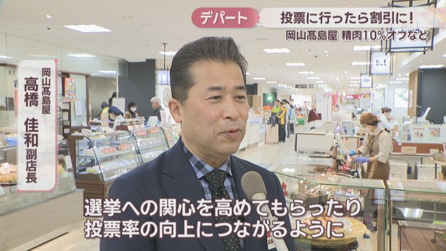 岡山市の岡山高島屋で始まった「選挙割サービス」。売り場で投票所来場カードや投票済み証明書などを見せ、衆院選の投票に行ったことを示すと割引などが受けられます。