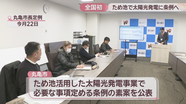 丸亀市は22日、市内のため池を活用した「太陽光発電」事業に関して、施設の適正な設置や管理について必要な事項を定める条例の素案を公表しました。