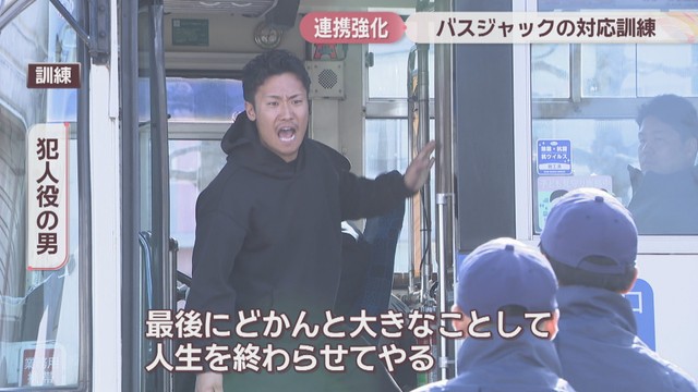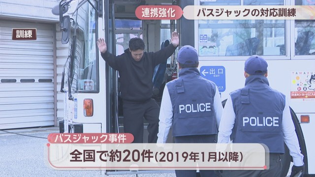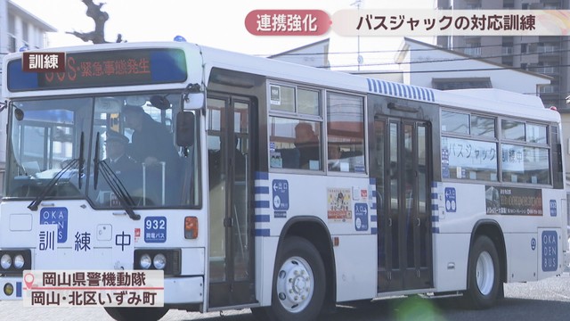 岡山県警とバス事業者がバスジャック事件を想定した訓練をしました。
