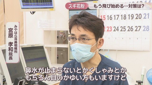 岡山市南区にあるみやはら耳鼻咽喉科では、今週に入って花粉症の症状を訴える患者が増えてきたそうです。