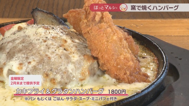 また、五十八には毎週金曜日だけ食べられる限定のスペシャルメニューがあります。「カキフライ&グラタンハンバーグ」(1800円)。この時季限定のホワイトソースとチーズで熱々のハンバーグです。大ぶりのカキフライが2個ついています。