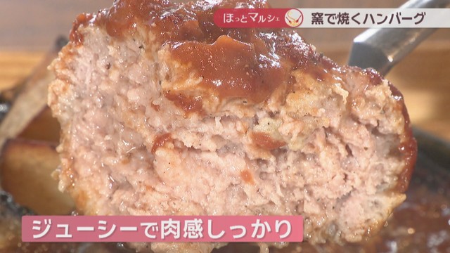 「窯の温度が約300℃。下焼きをしたハンバーグを窯に入れて仕上げるんですけど、薪を使っているので、薪の香りもつきますし、高温なんですけど遠赤外線でじっくり焼いて、中にうま味を閉じ込めるのがうちのやり方」