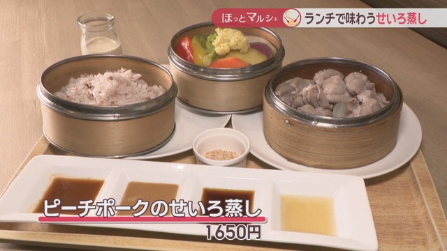 今の時期のお薦めが、岡山県産ブランドの「ピーチポーク」と旬の野菜が味わえる「せいろ蒸し」(1650円)です。