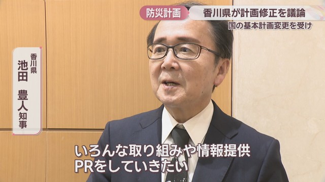「香川県防災会議」は県の防災計画を見直すために毎年開かれ、池田知事やインフラの関係者など委員58人が出席しました。
