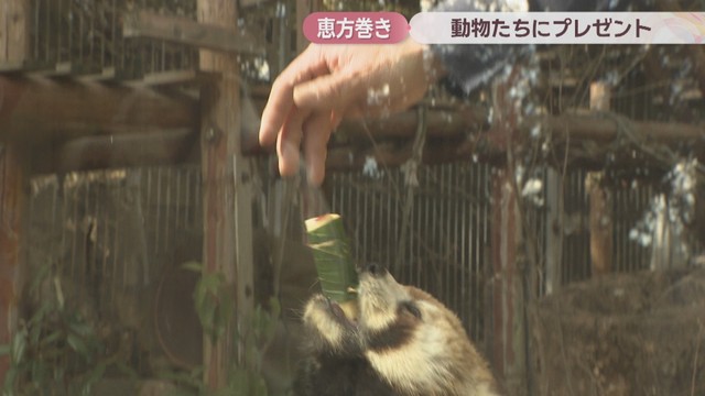 岡山市の動物園で3日、動物たちに特別な恵方巻きがプレゼントされました。