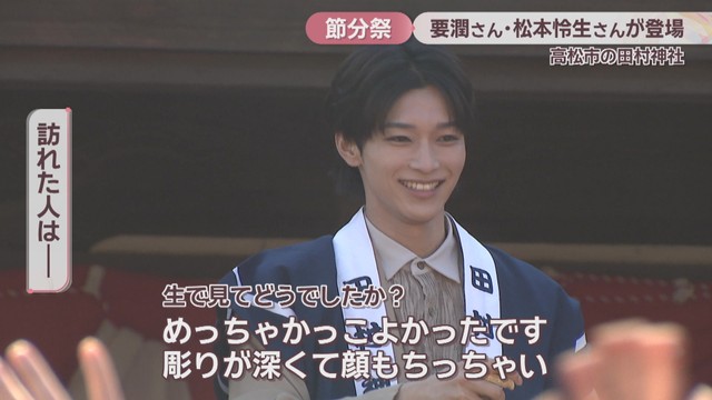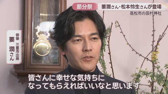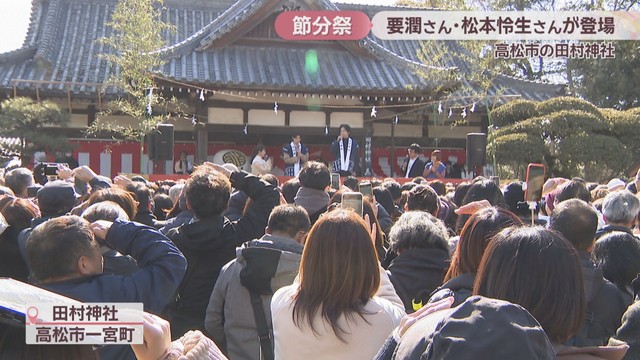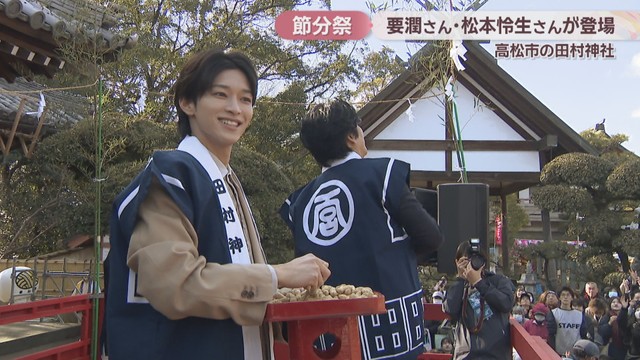 高松市一宮町の田村神社で節分祭が行われ、スペシャルゲストとして三豊市出身で俳優の要潤さんと、要さんとドラマで共演するなどの交流がある俳優、松本怜生さんが登場しました!
