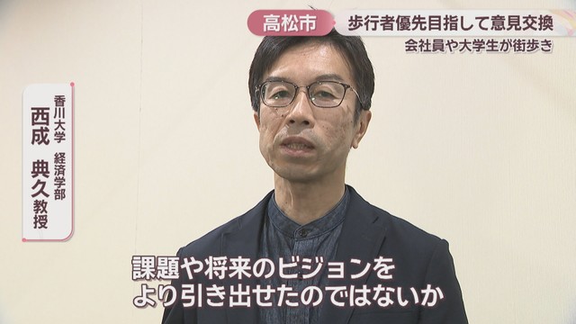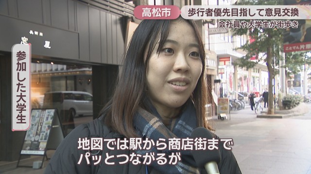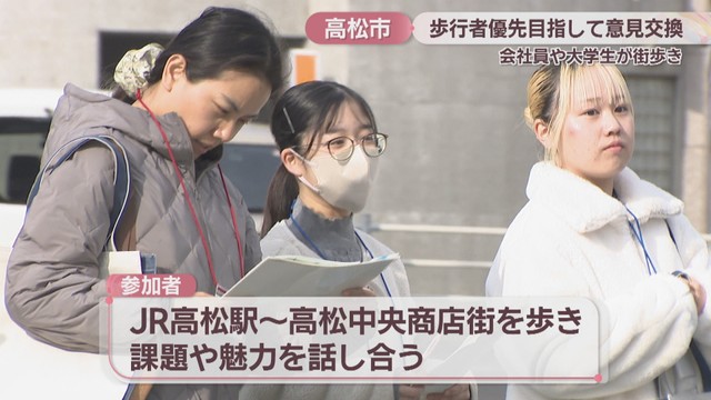 会社員や学生ら約40人がJR高松駅から高松中央商店街までの3つのルートを歩き、それぞれ気付いた課題や魅力について話し合いました。