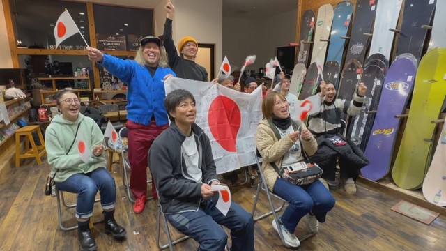 初めてのオリンピックに臨む木村葵来。岡山市のスノーボードショップでは両親や友人が声援を送ります。