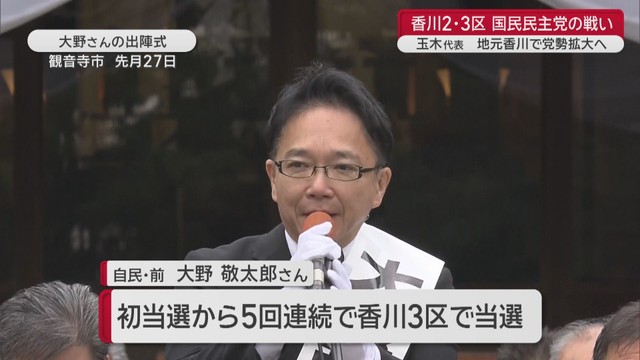 香川3区の相手は初当選から5回連続で小選挙区で当選している自民党の大野敬太郎さん。大野さんは認知度の高さに高市人気も加わり、優位に選挙戦を進めました。