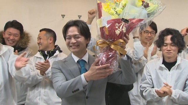 現職で3回目の当選を目指した谷口さんを約2500票の差で破り、三つどもえの選挙戦を制しました。