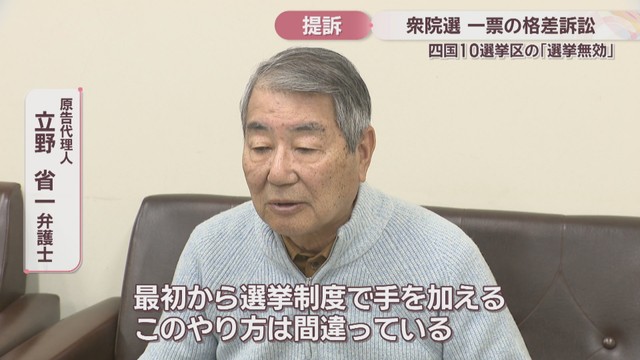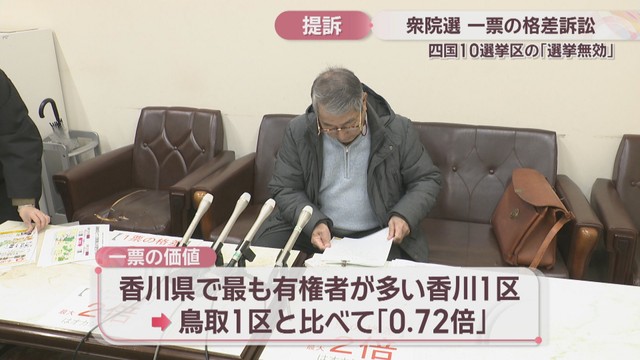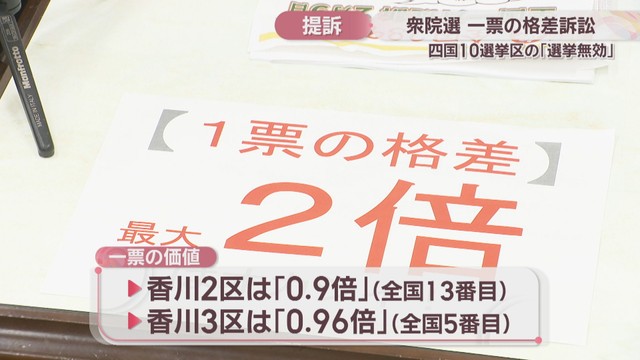 今回の衆院選の「一票の格差」を巡り、弁護士らのグループが全国289の小選挙区の「選挙無効」を求め、一斉に提訴しました。高松高裁では原告代理人の弁護士が四国の10の選挙区の「選挙無効」を求める訴状を提出しました。