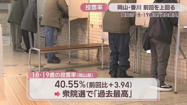 岡山県の18歳と19歳の投票率は前回と比べて3.94ポイント高い40.55%でした。