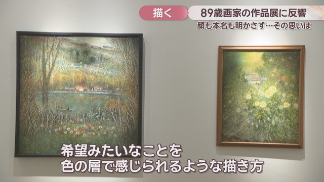顔も本名も明かさず、89歳になった今も絵を描き続ける画家の作品展が岡山県奈義町で開かれ、大きな反響を呼んでいます。先日、画家と家族が美術館を訪れ、初めてカメラの前で思いを語りました。