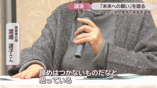 登壇したのは、2019年7月に起きた「京都アニメーション放火殺人事件」で犠牲になった渡邊美希子さん(当時35歳)の母・達子さんと兄・勇さんです。