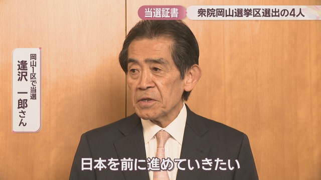 当選した4人のうち岡山1区の逢沢一郎さん、2区の山下貴司さん、4区の橋本岳さんが岡山県庁を訪れ、岡山県選挙管理委員会の大林裕一委員長から当選証書を受け取りました(3区の加藤勝信さんは代理人が受け取り)。