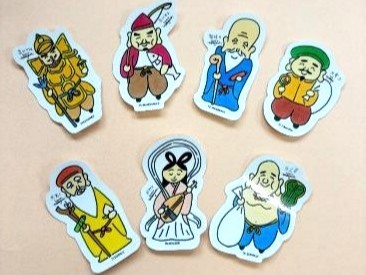 「七福神お守りステッカー」は、7つの寺が一体ずつ七福神を祭っていることにちなんで制作されました。山口一郎さんの優しい筆遣いで表現した七福神のイラストステッカーを携帯電話や手帳に挟むなどして身に付けることができます。