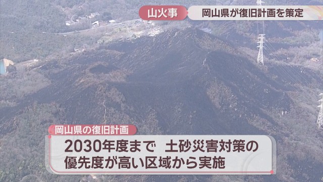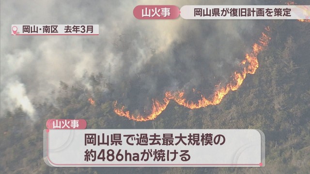 岡山市南区で2025年3月に発生した大規模な山火事について、岡山県が森林の復旧計画を策定しました。