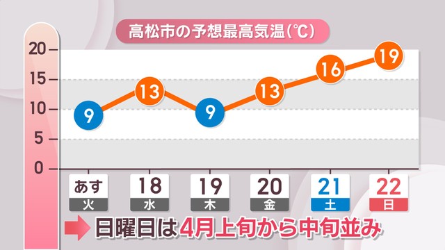 この先1週間、高松市の予想最高気温は日ごとに変化が大きくなりそうです。