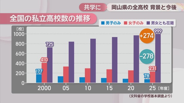 岡山県では全ての高校が共学になります。背景と今後の行方を探りました。