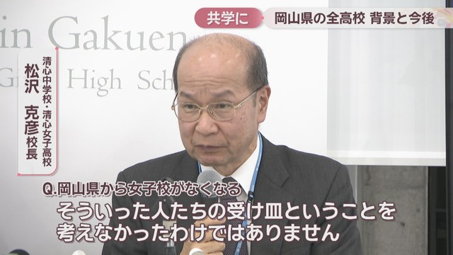 「(Q.岡山県から女子校がなくなることについて)男子が苦手という生徒もいるので、そういった人たちの受け皿ということを考えなかったわけではありません。正直、私どもとしては申し訳ないと思うところがある」