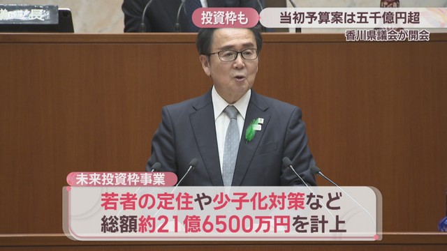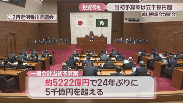 2月定例香川県議会が16日開会し、新年度の一般会計当初予算案など49議案が提案されました。