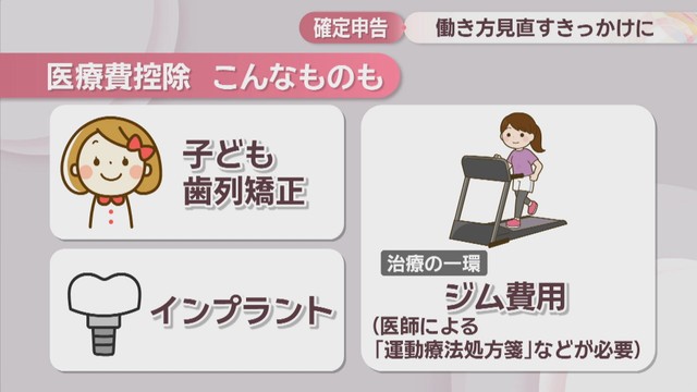 子どもの歯列矯正やインプラント、医師に治療の一環でジムに通うよう言われた際のジム費用などがあげられるということです(※医師による「運動療法処方箋」などが必要)。