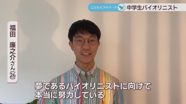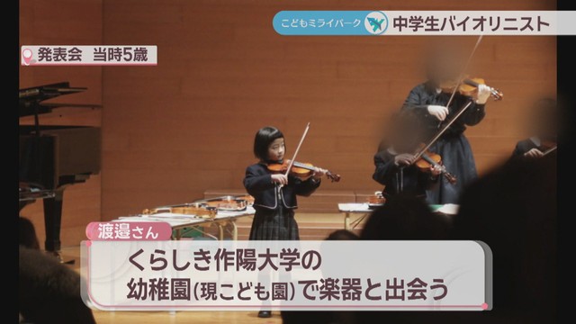 岡山・香川の子どもたちの今をお伝えする「こどもミライパーク」のコーナーです。世界を目指して日々、練習に取り組む岡山県倉敷市の中学生バイオリニストを紹介します。