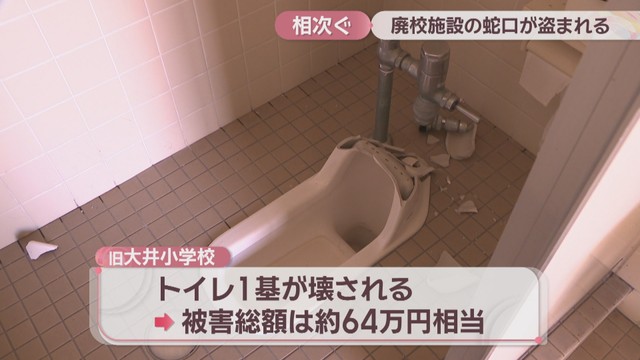 また旧大井小学校ではトイレ1基が壊されていたことが分かりました。蛇口とトイレを合わせた被害額は約64万円相当だということです。