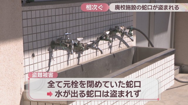廃校になった岡山市の小学校と幼稚園で、水道の蛇口が相次いで盗まれました。