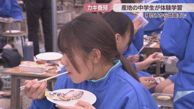 岡山を代表する「カキ」の産地・備前市の日生地区で18日、地元の中学生が自分たちで育てたカキを洗って選別し、試食しました。