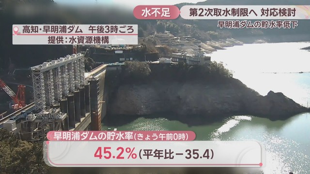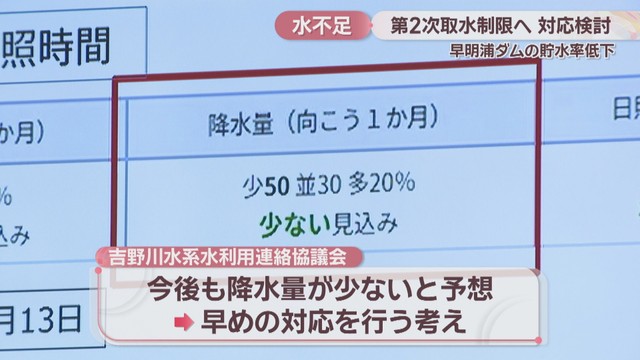 冬場は「早明浦ダムの貯水率30%」程度を第2次取水制限に入る目安の一つとしていますが、今後も降水量が少ないと予想されていることから早めの対応を行うとしています。冬の時季に第2次取水制限が行われれば、1996年2月以来、30年ぶりとなります。