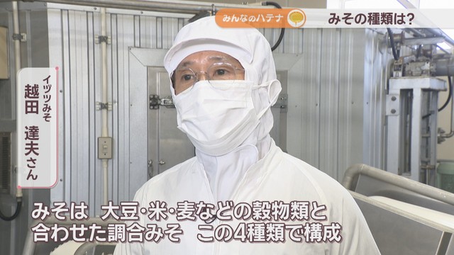 「みそは、大豆・米・麦などの穀物類とこれらを合わせた調合みそ、この4種類で構成されています」