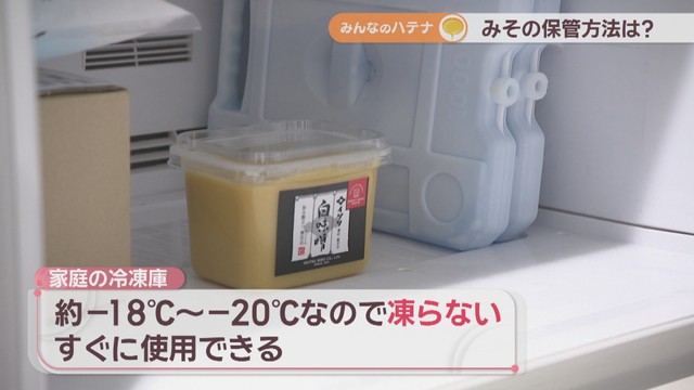 「これはですね冷凍が1番、冷蔵が2番です。みそは糖分・塩分・アミノ酸が多いので、凍る温度が非常に低くなります。だいたい-30℃位までは凍らない」