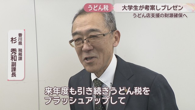 「今の段階では(導入は)厳しいんじゃないかな。来年度も引き続きうどん税をブラッシュアップして提言してもらえるということで楽しみにしている」