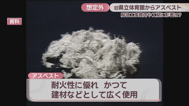 2005年と08年に閉館前の県立体育館でアスベストの調査と除去を行っていましたが、今回の場所からは見つかっておらず、2023年から24年にかけて行った解体工事の実施設計でもアスベストの報告はありませんでした。