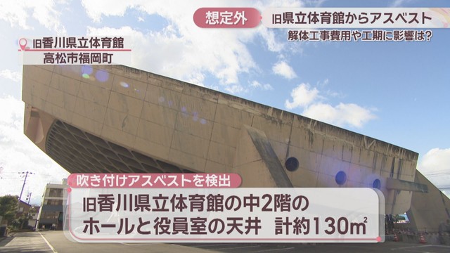 香川県が解体に向けて準備を進めている旧県立体育館の建物の内部で、想定されていなかった有害物質「アスベスト」が検出されたことが20日、分かりました。空気中への飛散はないということです。