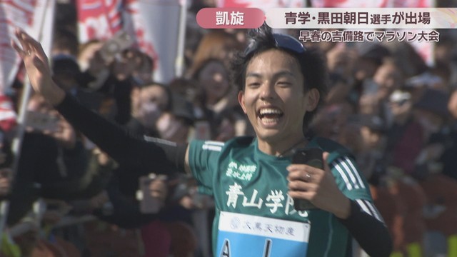 総社市で恒例のマラソン大会が開かれ、岡山市出身で青山学院大学の黒田朝日選手が出場しました。