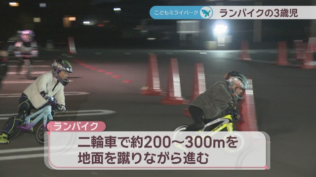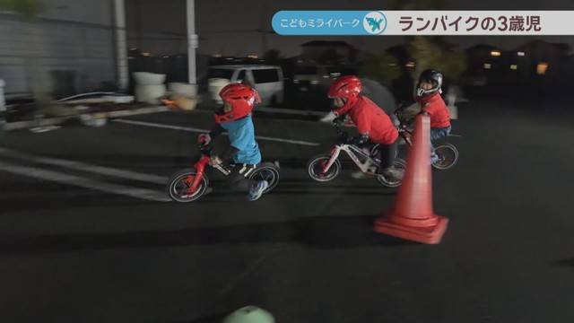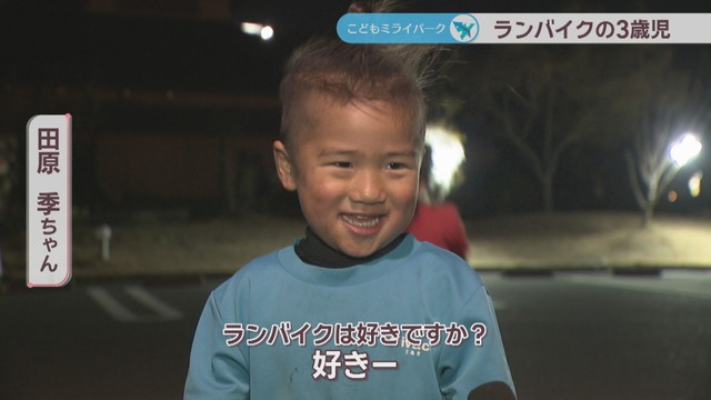 夜7時。高松市内の真っ暗な練習場を二輪車で颯爽と駆け抜けているのは、高松市の田原季(たばら・とき)ちゃん(3)です。