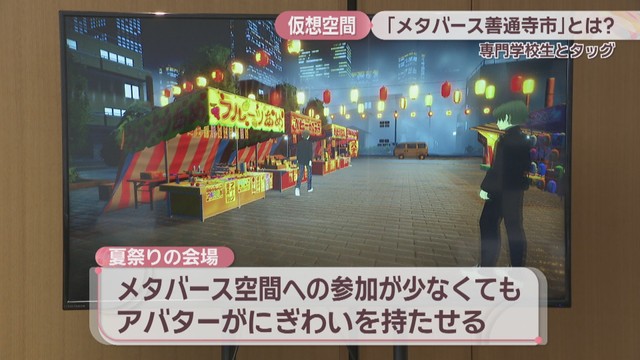 市民に扮したアバターが善通寺市の夏祭りの会場でにぎわいを持たせるなど工夫も盛り込まれています。今後、善通寺市を全世界の人たちに知ってもらう方策を検討します。