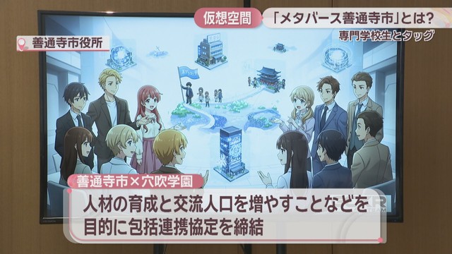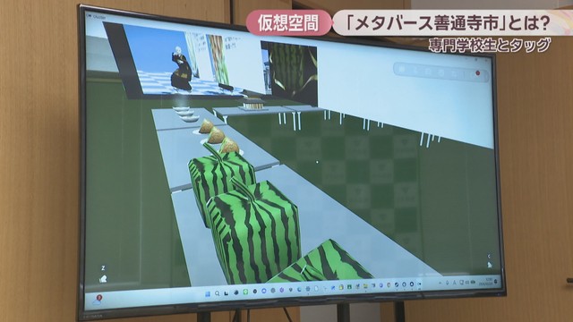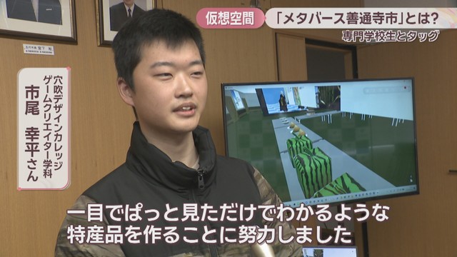 穴吹デザインカレッジの学生が善通寺市を題材にした「メタバース善通寺市」を約1年間かけて制作し、学生がその出来栄えを市長らに報告しました。