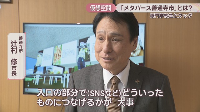 香川県善通寺市の名産品などを紹介した「メタバース空間」を高松市の専門学校生が作り、善通寺市長に報告しました。