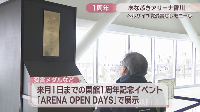 あなぶきアリーナ香川は24日、開館1周年を迎えました。国際的な建築賞「ベルサイユ賞」を受賞したことを記念してセレモニーが行われました。